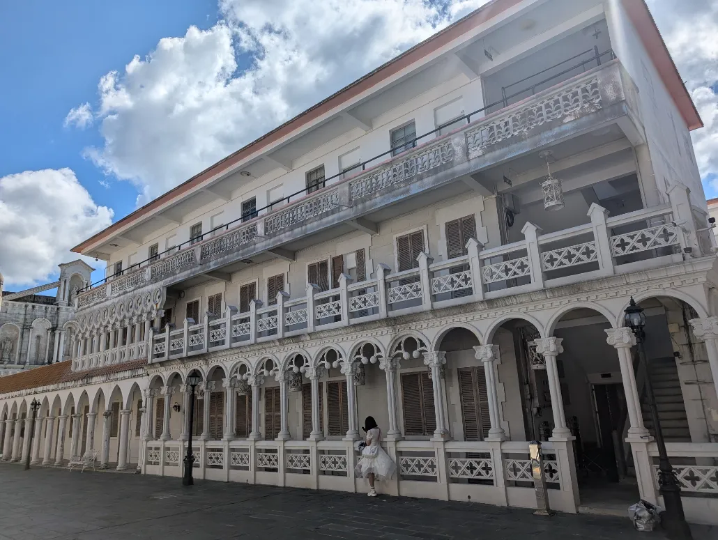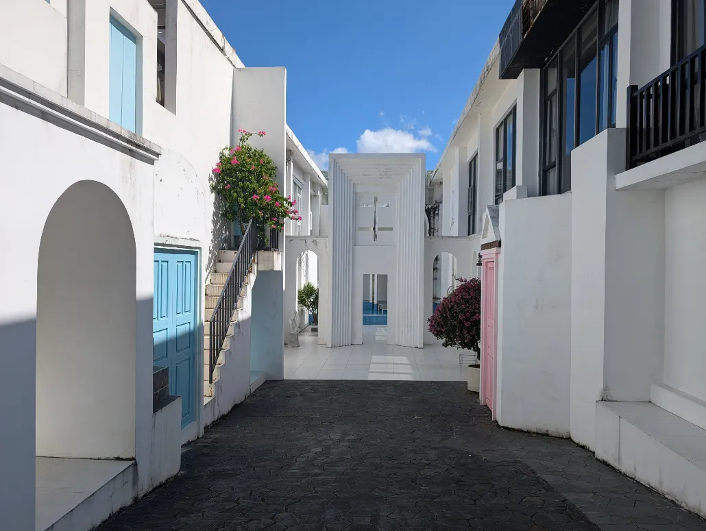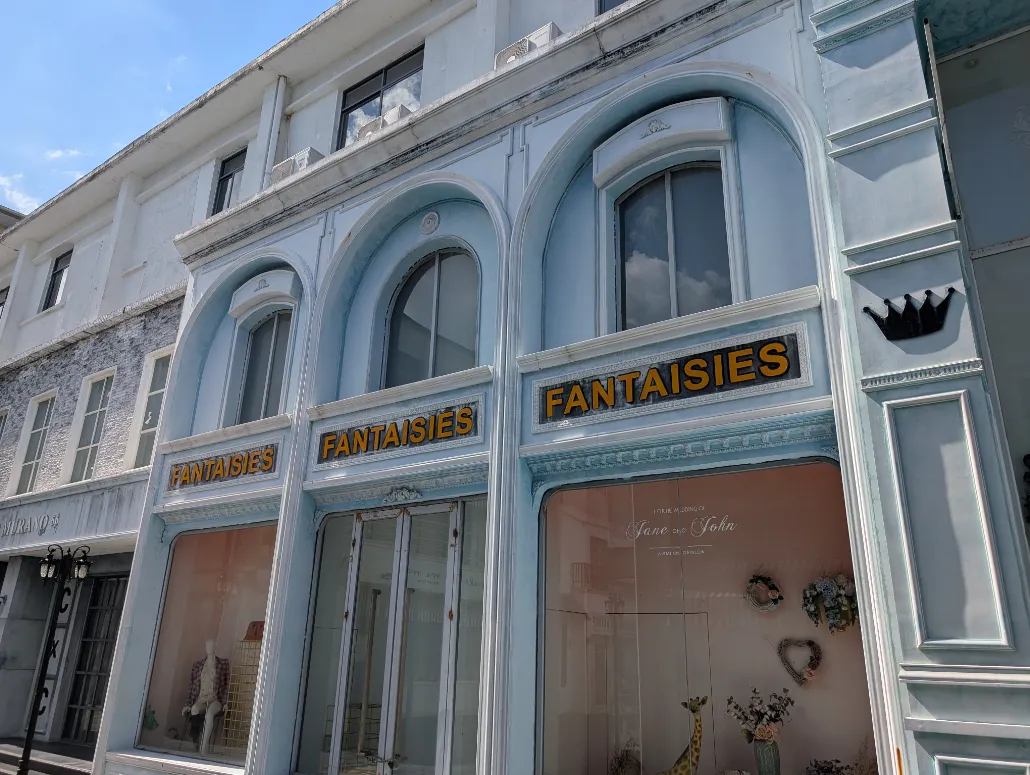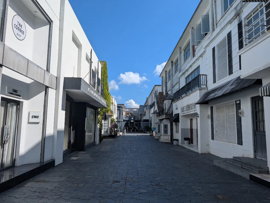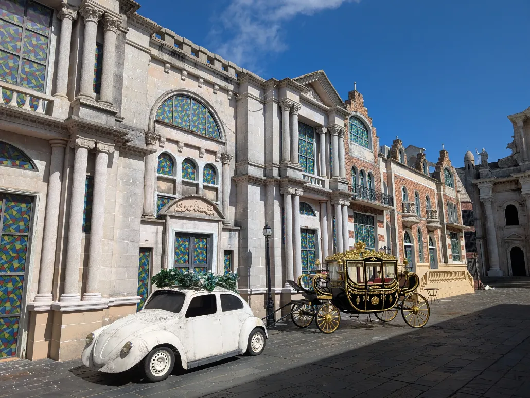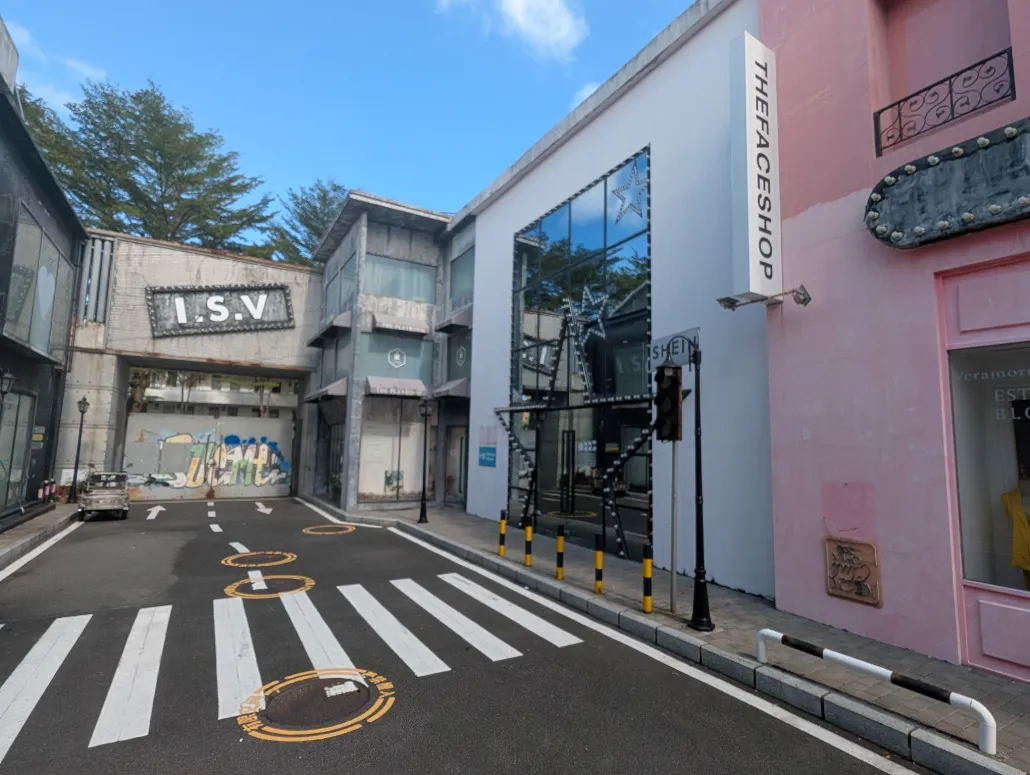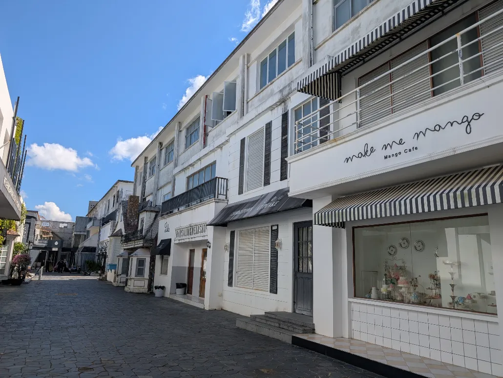 ローズタウンの敷地内へ入場しました。SNS で映えそうな建物や風景が広がっています。