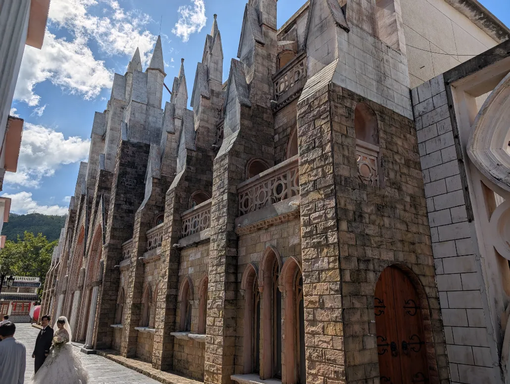 その後、古いレンガの壁や工場の骨組みを活かした、ヨーロッパ風のフォトパークとしてリノベーションされ、ヨーロッパ風の教会群や街路、中国風の中庭など、様々なテーマに沿った撮影スポットとして人気を集めています。