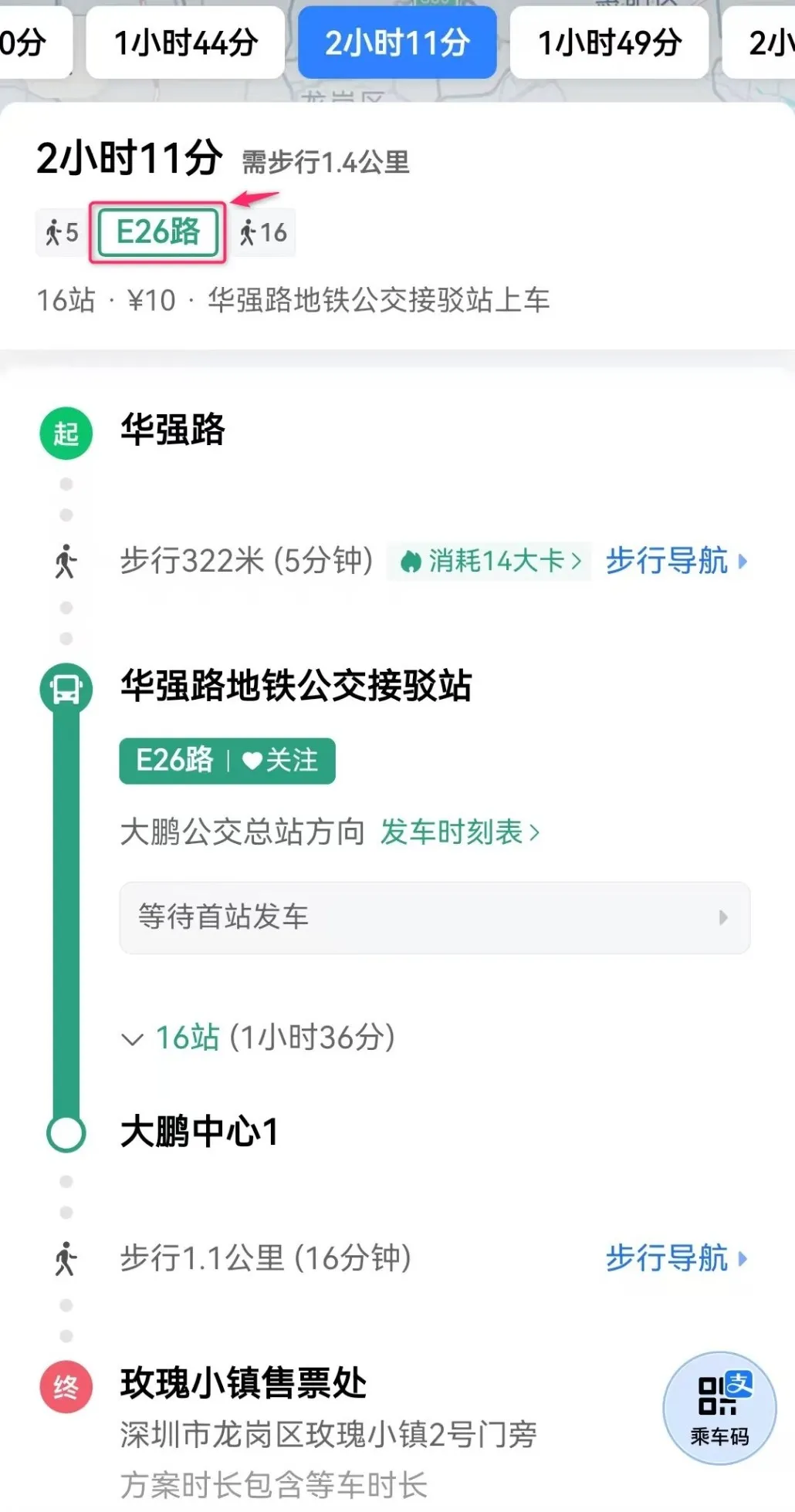 深圳の「華強路」付近から出発している「E26」という路線バスに乗り、「大鵬中心①」のバス停で下車し、そこからローズタウンまで歩いていきます。