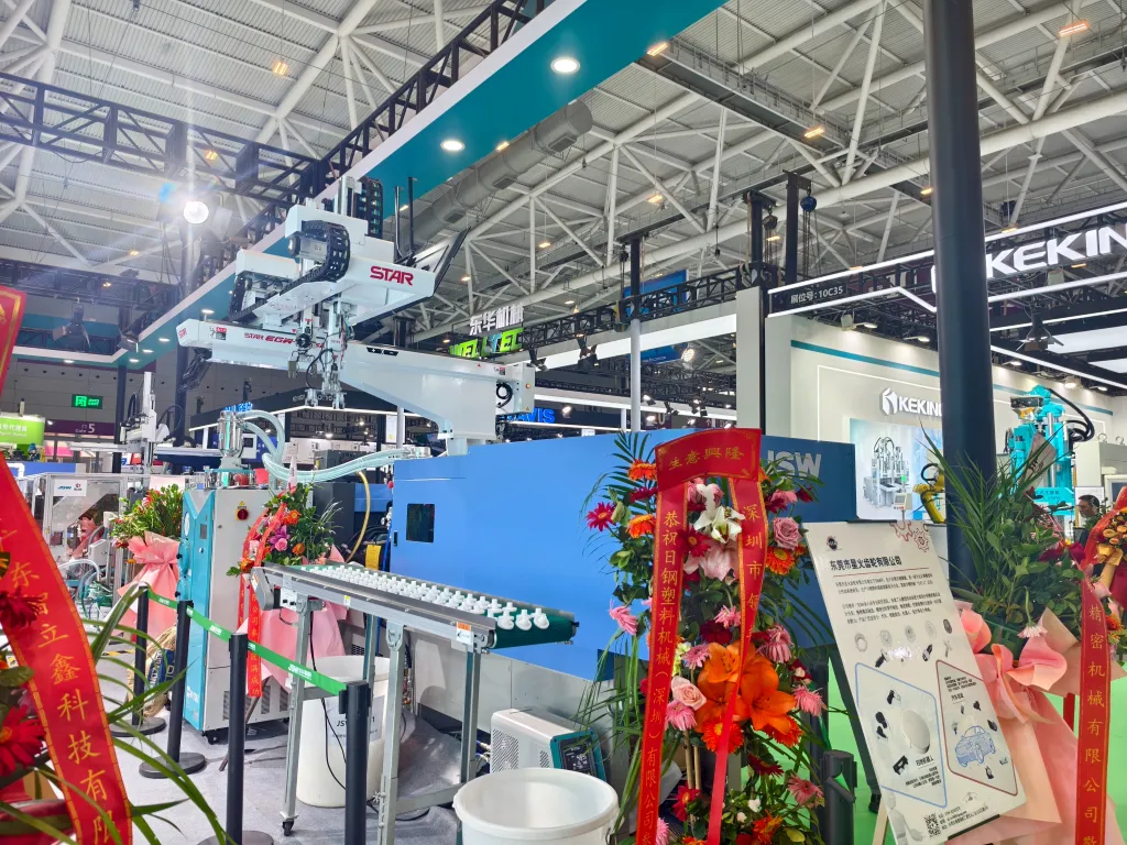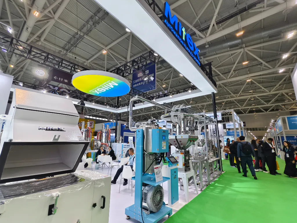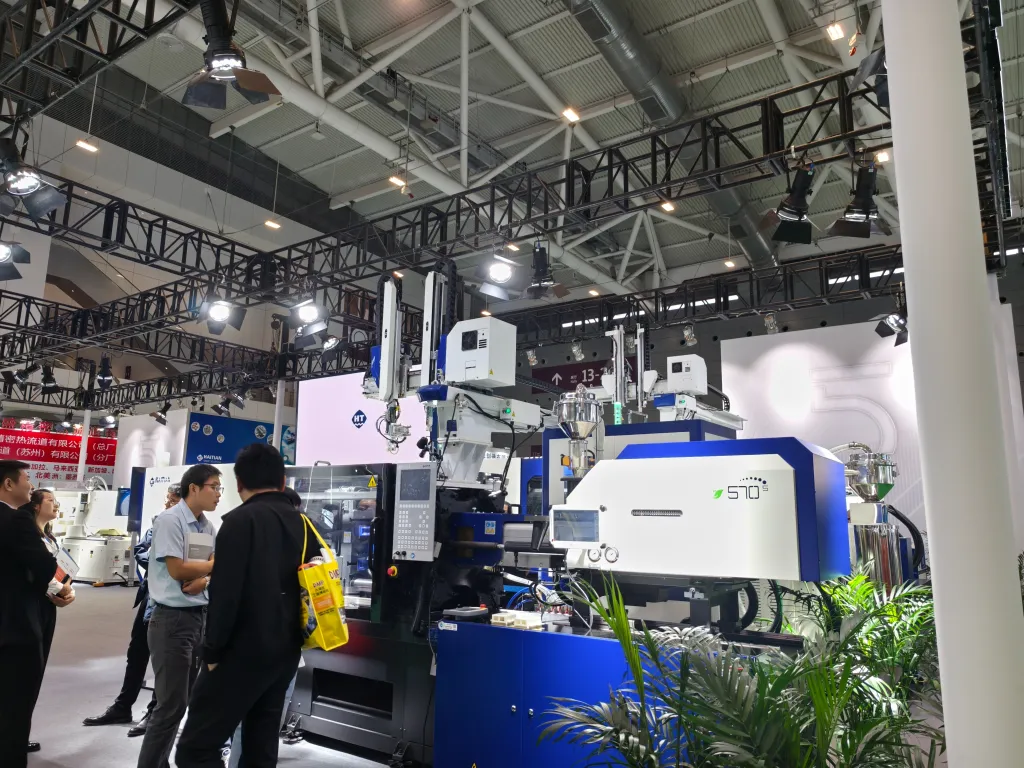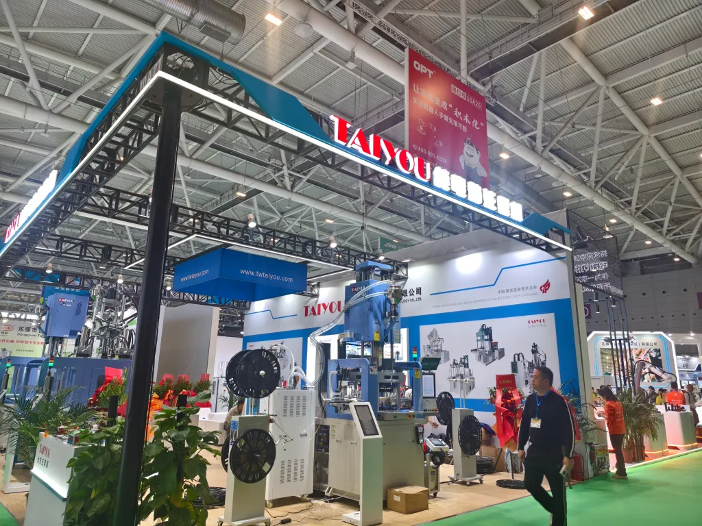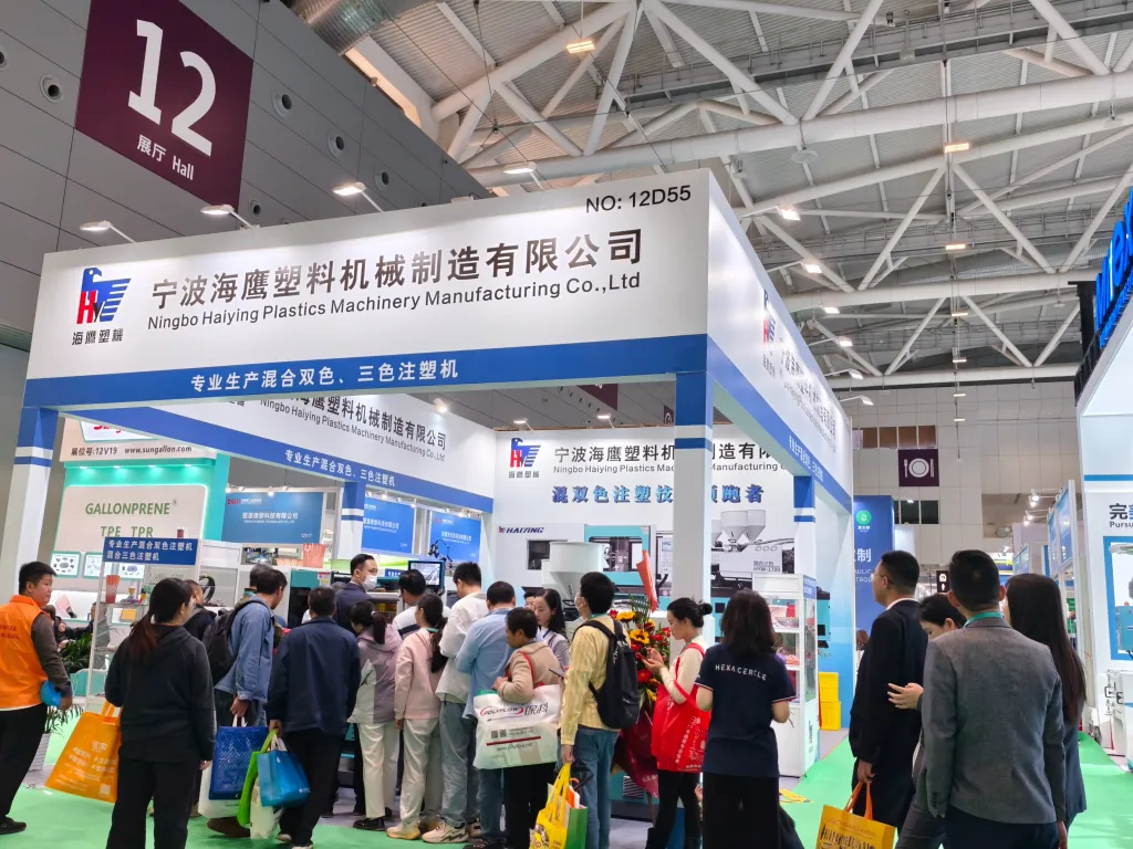 The booth of Ningbo Haiying Plastic Machinery Co., Ltd. had a long line of visitors—it was really busy.