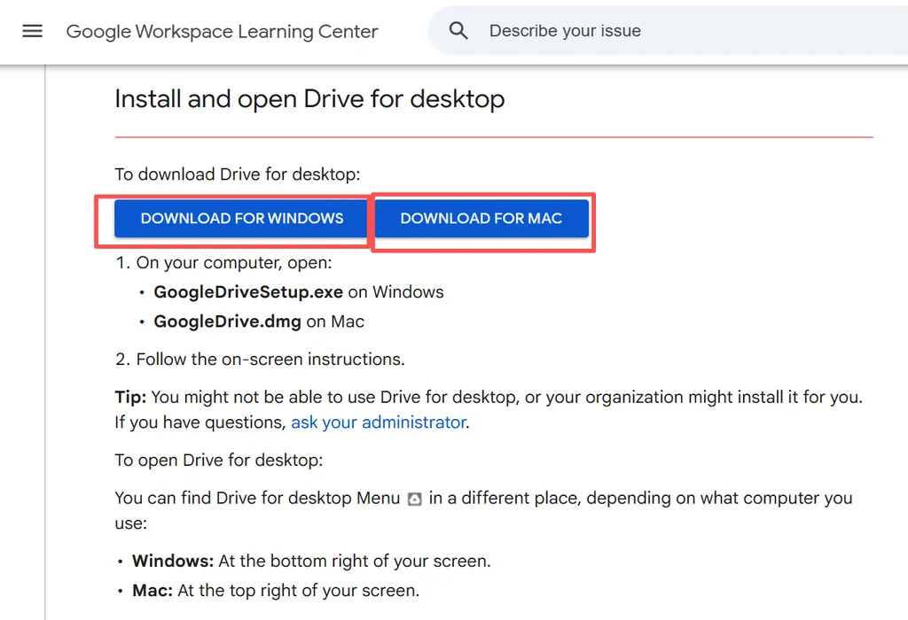 | Google Drive for Desktop URL | https://support.google.com/a/users/answer/13022292?hl=en |