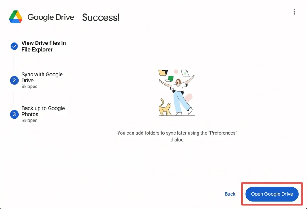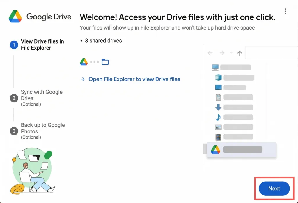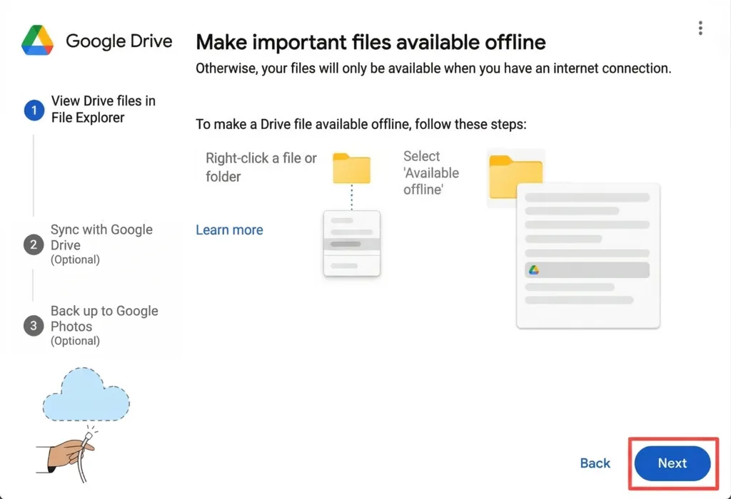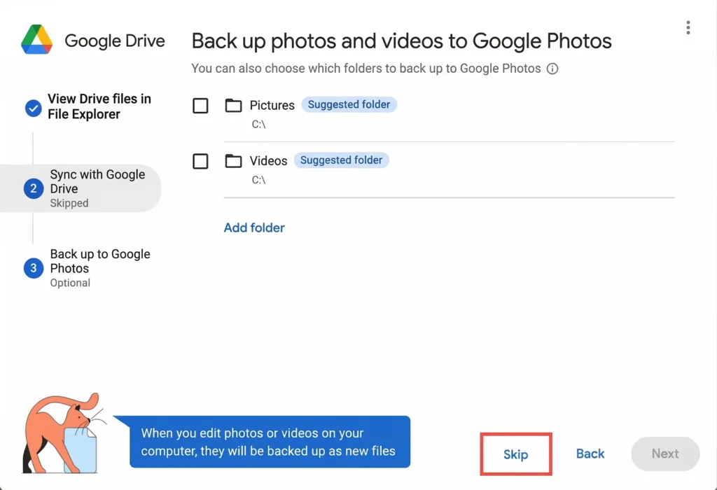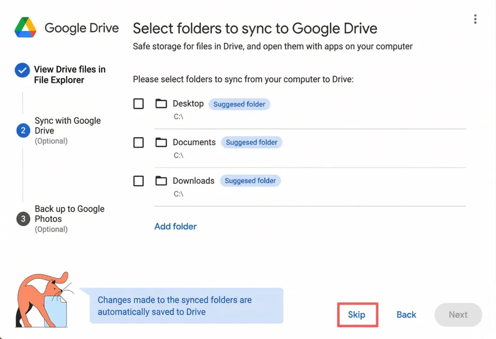 If you primarily use Google Drive to access or edit files shared by others, we recommend skipping this step. This will save local disk space and keep your system running smoothly.