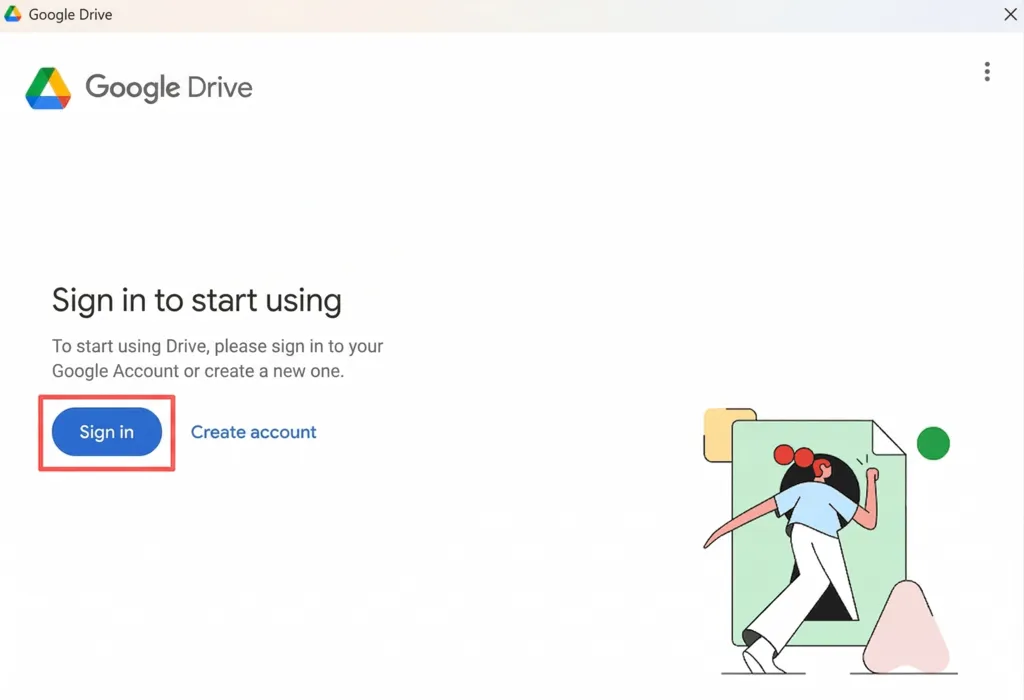 After installation, Google Drive will create a virtual drive by default (usually the G: drive).