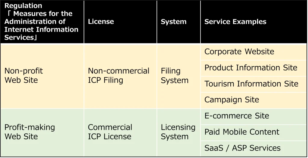 | ② If we set up a server in China Hong Kong, do we need to obtain a non-commercial ICP license? | Since Hong Kong is a “SAR (Special Administrative Region)” the “Administrative Measures for Internet Information Services” do not apply. Therefore, filing a non-commercial ICP license is not required.