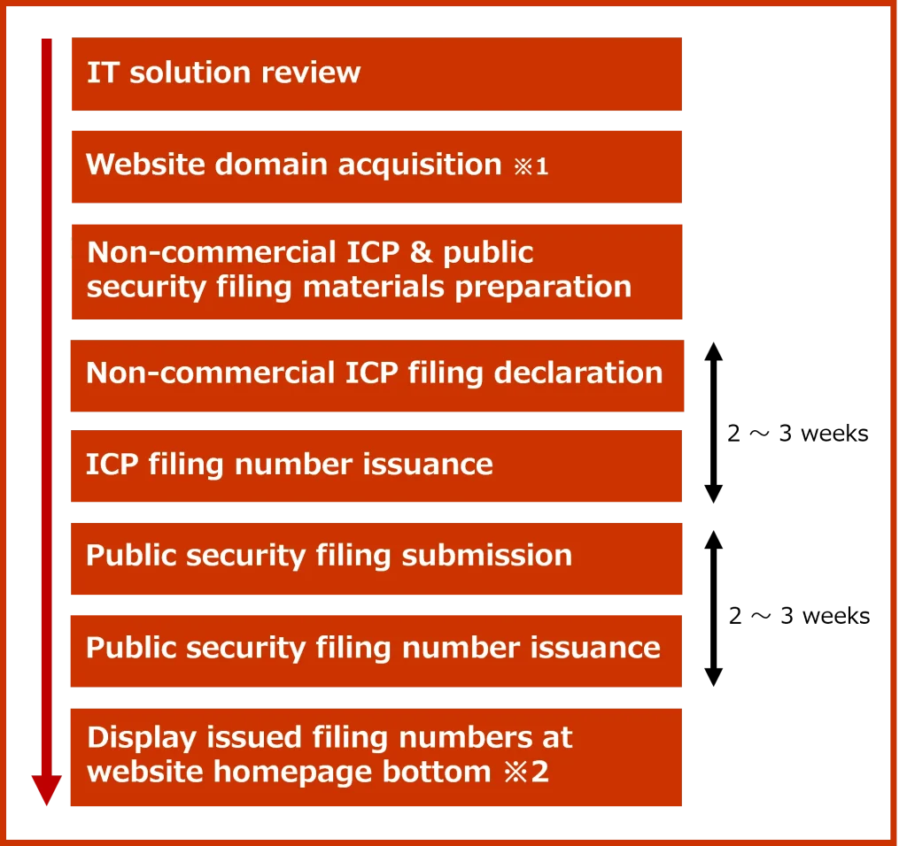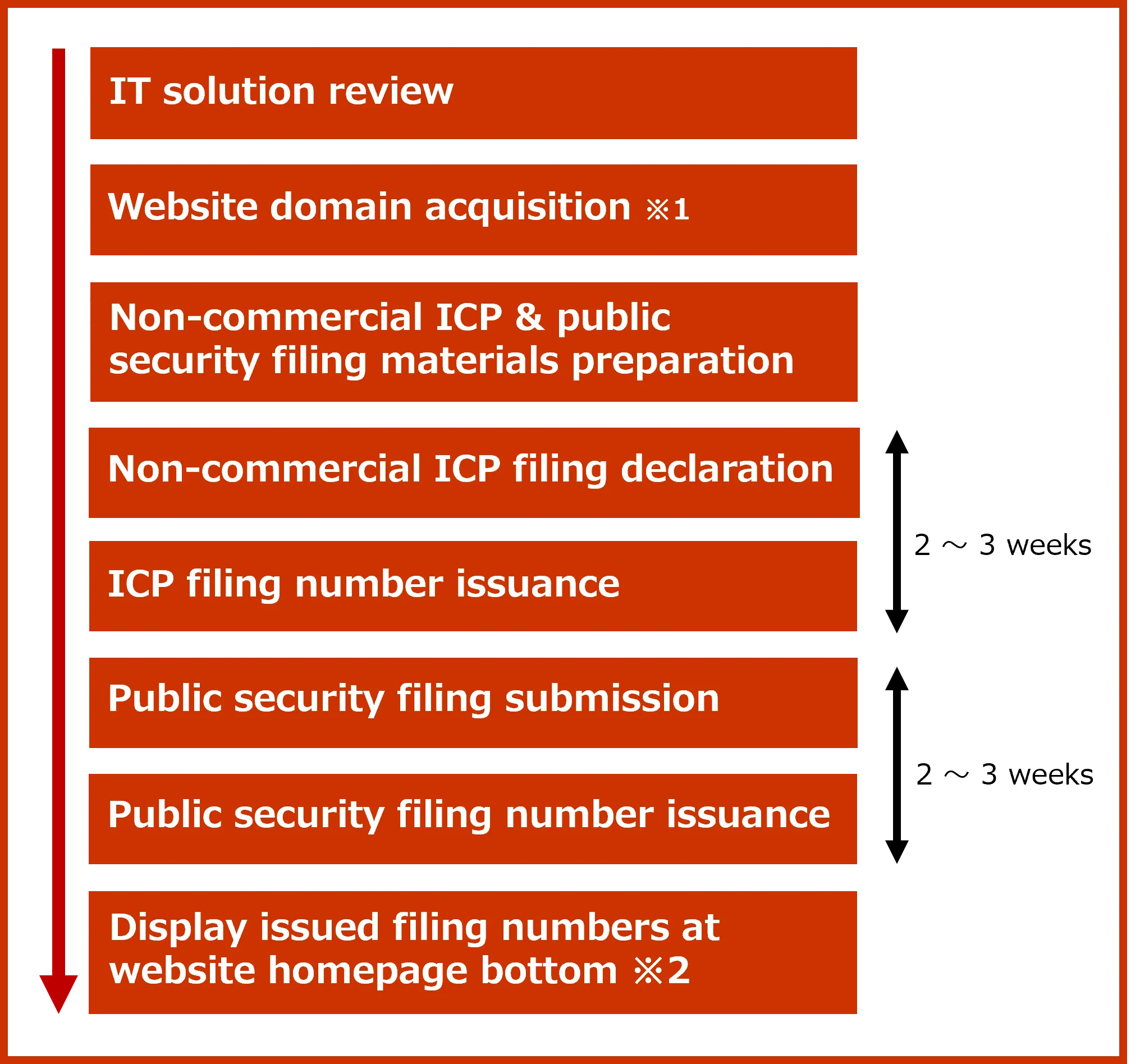 | ① We plan to create a corporate website in China. Can we use the same domain as our Japan or overseas sites? | No. Domains registered with Japanese or overseas registrars cannot be directly used in China.