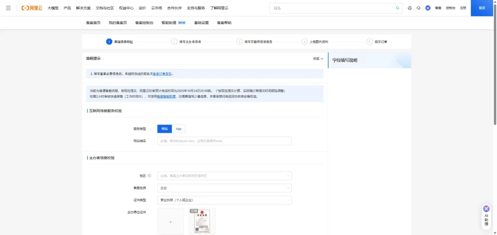 | Reference URL | https://beian.aliyun.com/?spm=a2cmq.17630022.0.0.7ab879fe1yPBx2 |