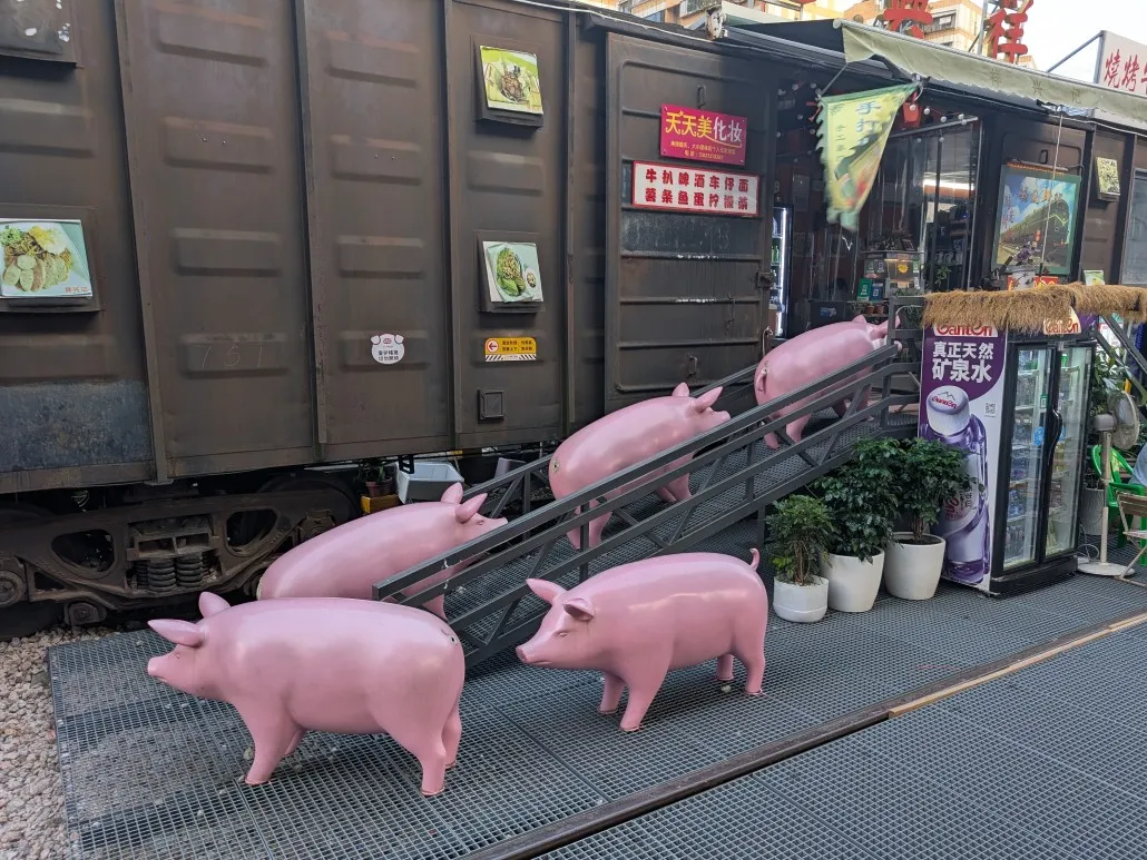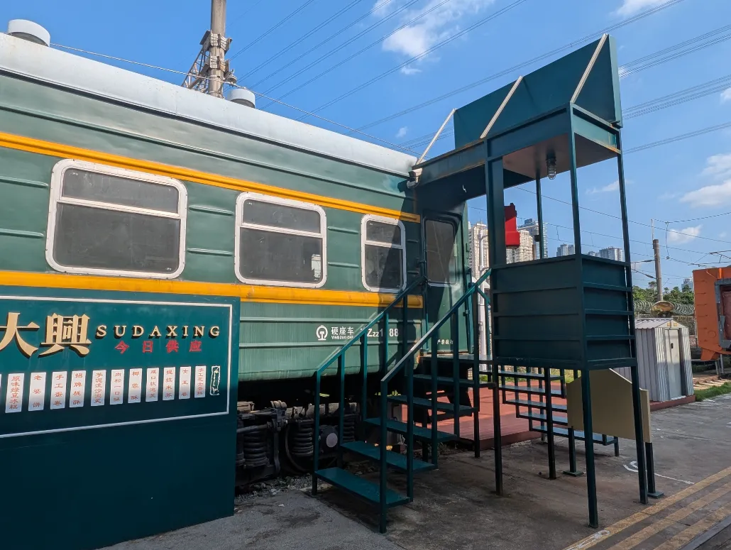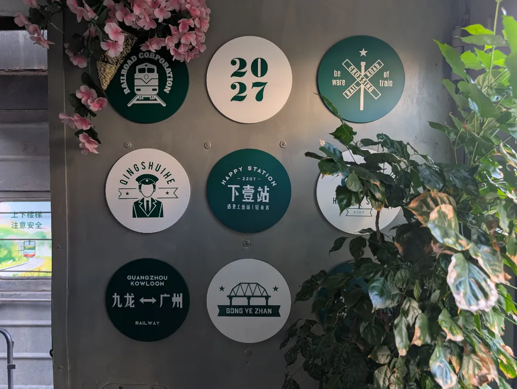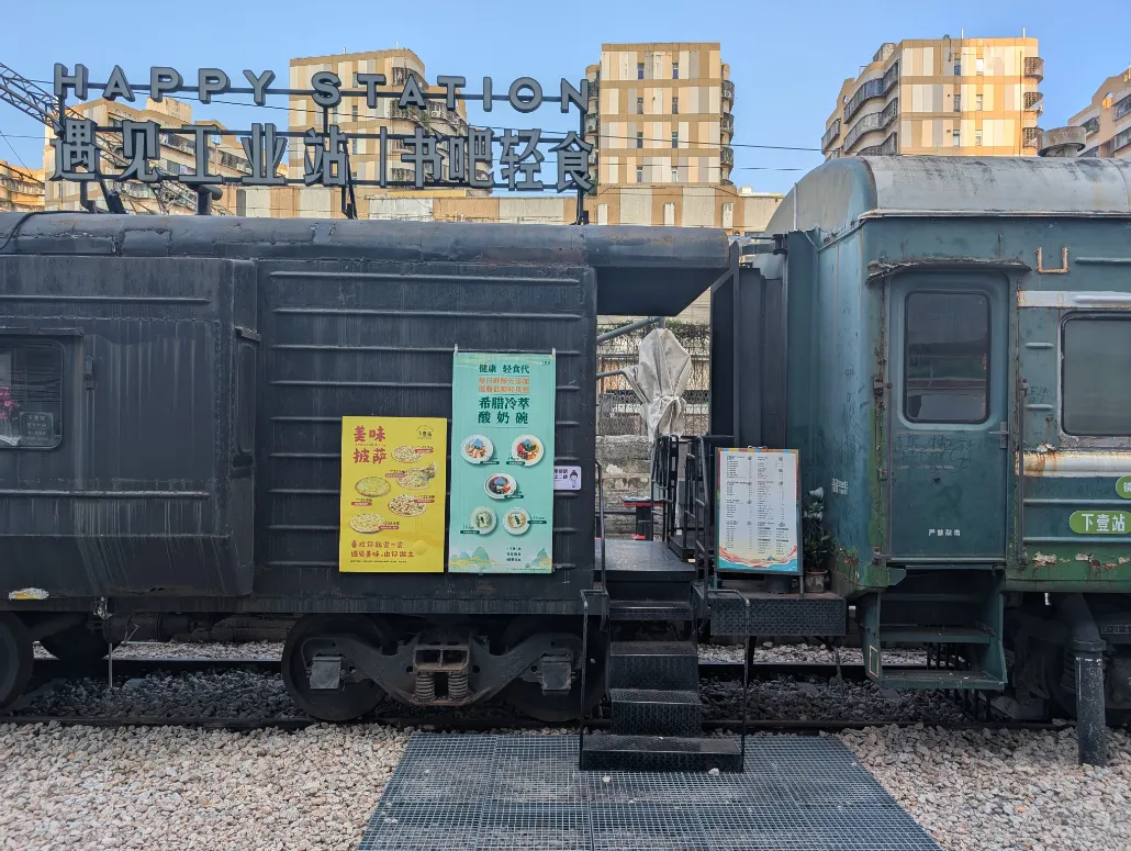 After returning to the first entrance of Qingshuihe Railway Park, I step into a shop renovated from the interior of a passenger carriage.