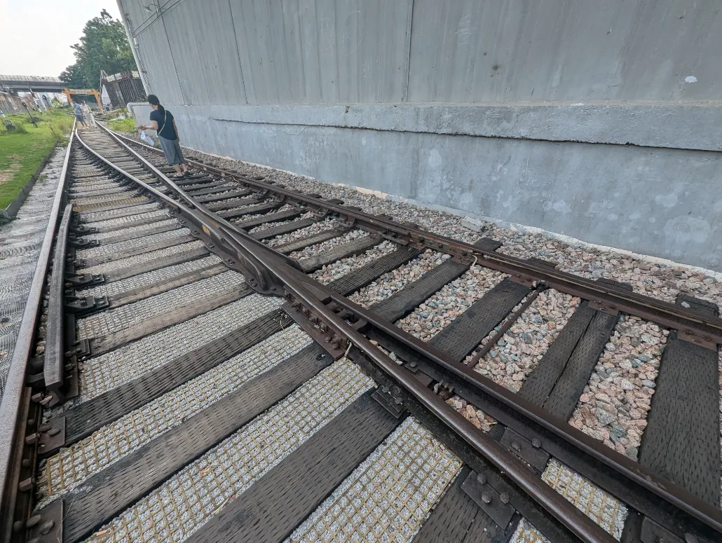 Walk along the railway tracks. Of course, it’s perfectly fine to walk within the track area.