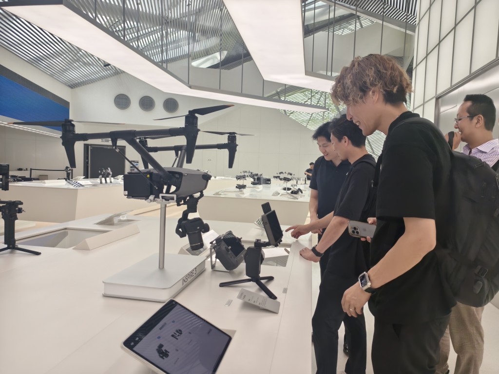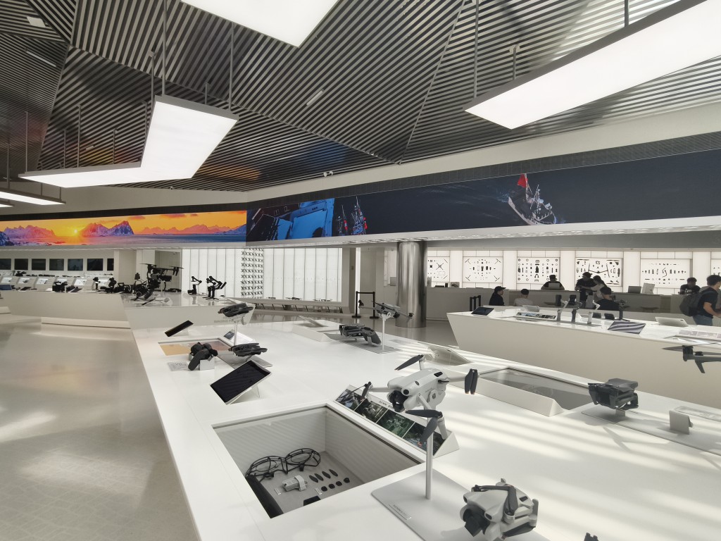 店内展示了最新的产品,以及与产品演变和历史相关的展览,可以通过 DJI 的产品,真正学习到无人机发展的整个过程。